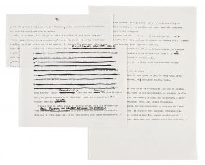 - Version manuscrite (137 ff.). Signalons quelques ajouts marginaux (troisième chemise, f. [1] « Je veux d'ailleurs que les lettres… » qui modifie le texte « Je mettrai chaque matin à la boîte postale de la clinique une lettre sans adresse ni destinataire. »