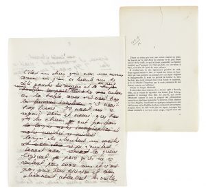 - Une ébauche manuscrite avec dactylographie concernant le début de l'ouvrage sur papier pelure. 16 ff. dactylographiés et 46 ff. manuscrits de deux encres bleues.
