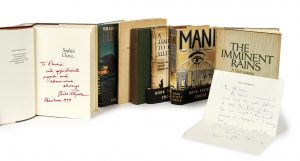 Exemplaire accompagné d'une lettre de dédicace volante de l'auteur, sur papier à en-tête, datée du 1er août 1968, rapportant son admiration pour The Roots of Heaven de Romain Gary.