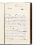 encadrement, gardes de soie moirée grise (Marius Michel). — 8 p. in-8 (20,8 x 12,8 cm) à l'encre noire ou violette sur 4 doubles ff. de papier vergé, une enveloppe autographe à l'encre violette, le tout monté sur onglets sur des feuillets de vergé fort.