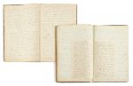BLOY (Léon) — Manuscrit autographe de son Journal d'enfance et de jeunesse. — 1861-1866. — 2 cahiers in-fol. (32 x 20, 5 cm), plats cartonnés, dos lisses, demi-toile verte pour le premier et demi-percaline prune pour le second. 184 p. sur 92...
