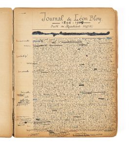 précieux cahier est le manuscrit de travail dans lequel Bloy procède à la réécriture de son Journal, avant la copie mise au net pour l'impression.