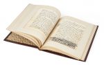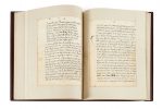 froid sur les plats, cadre intérieur à double filet doré et filet à froid, tranches dorées, chemise et étui (André Ballet, J. Duval rel. et H. Berthaux dor.) — 34 p. sur 17 ff. in-4 (22 x 16 cm) numérotées de main ancienne, 1 f. bl. — Le manuscrit est monté à fenêtre dans des feuillets de papier vergé.