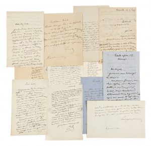DESCHAMPS (Émile). — Lettres autographes signées. — Lettres autographes signées. — 1830-1862 et s. d. — 85 p. in-12 et in-8, papiers divers, encres brune et noire, adresses au dos.