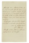 - 1 L. A. S. de Prosper Mérimée adressée au Duc de Gor pour lui recommander Eugène Delacroix, datée du 12 décembre 1831. 2 p. in-8 sur un bifeuillet de papier vélin, encre noire. « Ce voyageur n'oubliera pas plus que votre inépuisable complaisance les agréables moments qu'il a passés auprès de vous et de Madame la duchesse de Gor. Il est tellement persuadé de votre bienveillance pour tous ses compatriotes qu'il prend la liberté de vous recommander un de ses bons amis M. Eugène Delacroix, l'un de nos peintres les plus distingués qui désire depuis longtemps voir vos admirables monuments. Permettez-moi Monsieur le duc, de vous prier de vouloir bien lui donner quelques conseils sur la meilleure manière d'employer le peu de jours qu'il peut passer à Grenade, et lui faciliter l'entrée de quelques monuments si les étrangers ne sont point admis sans recommandation. »