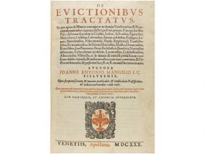 1630. (HUMANIDADES). MANGILIO, JOANNE ANTONIO: DE EVICTIONIBUS TRACTATUS. IN QUO AGITOR DE MATERIA CONTINGENTE NE DUM IN VENDITIONIBUS, & BONORUM ALIENATIONIBUS IN GENERE FACTISÀ PERSONIS PRIVATIS, PRINCIPE, SEU ILLIUS FISCO, SED ETIAM SPECIATIM I....