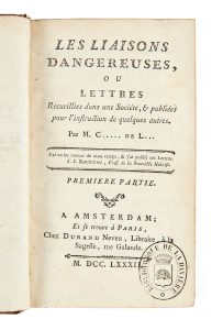 dangereuses. […] Le roman a un succès foudroyant. Sous la date de 1782 paraissent au moins 16 éditions différentes ; les unes sont légitimes, les autres des contrefaçons » (Max Brun). Notre exemplaire présente bien toutes les particularités du tirage A décrites par Max Brun.
