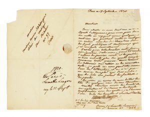 Lettre autographe à Maurice Schlesinger, éditeur de musique, datée du 19 septembre 1830.