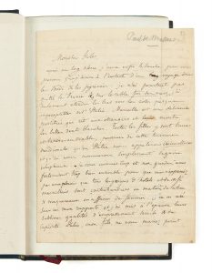 et une lettre autographe signée de Paul de Musset à son ami Jules Lecacheux lui relatant son voyage dans le sud de la France et lui faisant part de son goût pour les femmes de la région (Paris, s. d., 4 p.).