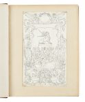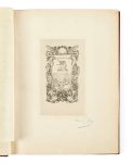 - Un dessin original à la plume signé du frontispice de Rops pour l'édition des Oeuvres de Musset par Lemerre en 1876 (22 x 12,7 cm), avec 6 états de cette eau-forte dont une sanguine (15 x 9 cm), deux signés par Rops.