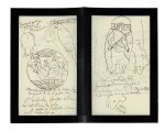 Très belle lettre illustrée de dessins originaux à la plume avec légendes autographes.