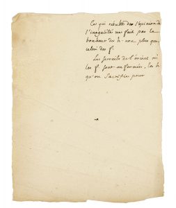 Les serrails de l'Orient où les f[emmes] sont enfermées, les hommes qu'on sacrifie pour », la dernière phrase étant inachevée. S'agirait-il d'un brouillon pour son fameux traité Discours sur l'origine et les fondements de l'inégalité ?