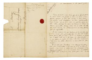 ROUSSEAU (Jean-Jacques) — Lettre autographe signée. — Montmorency, 18 janvier 1762. — 2 p. sur 1 bifeuillet in-4, encre brune, adresse au dos, cachet de cire rouge.