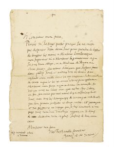 SALES (François de) — Lettre autographe à Monsieur de Pézieu. — Vienne (France), 11 novembre 1622 . — 1 p. sur 1 f. in-4 (17 x 19 cm).