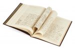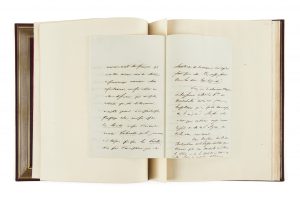 avec jeu de filets dorés en encadrement, gardes de soie moirée bordeaux, étui bordé (G. Mercier Sr de son père - 1929). — 52 p. sur 28 ff. in-12 et in-4 montés sur onglets.