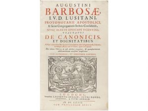 1679. (RELIGION-DERECHO CANONICO). BARBOSAE, AUGUSTINI: TRACTATUS DE CANONICIS, ET DIGNITATIBUS. ALIISQUE INFERIORIBUS Beneficiariis Cathedralium, & Collegiatarum Ecclesiarum, eorumque officiis, tam in choro, quam in Capitulo. Lugduni (Lyon):...