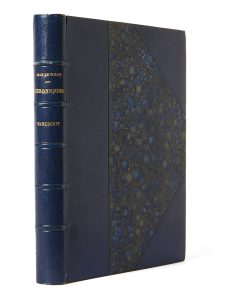 TINAN (Jean de) Manuscrit autographe pour les "Chroniques". [1896]. In-8 (22, 5 x 17 cm), demi-maroquin bleu nuit à coins, dos à nerfs orné, plats et garde décorés de papier caillouté bleu et or, tête dorée (Semet & Plumelle). 106 p. in-8 (20...