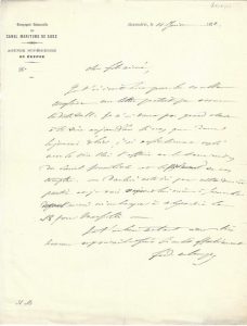 — Lesseps (Ferdinand de). Lettre autographe signée à son fils. Alexandrie (Égypte). 1872. Sur son embarquement prochain.