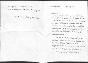 — Lévi-Strauss (Claude). Lettre autographe signée à Christian Lançon. Paris, 31 juillet 1993. Relatif à l'Académie française et à Henry de Montherlant.