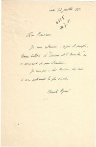 — Lettre autographe signée [à Marcel Thiébaut]. 1960. Concernant un projet de nouvelle ou d'article intitulé « Le beau savoir ».