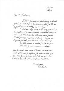 Correspondance de 5 lettres autographes signées à Romain Tardieu. Tanger, 1990-1996. Souvenirs peu communs de cet ami de Tennessee Williams, Jack Kerouac, William S. Burroughs... Il fut entre autres l'auteur d'Un Thé au Sahara.