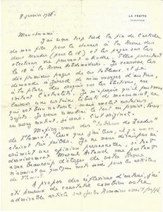 — 30 janvier 1938. Entre autres, il réclame les épreuves de « Terre de l'amitié », extrait de son livre Le Bonheur de Barbezieux.