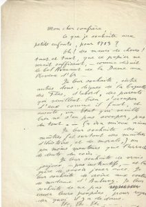Ensemble de 11 pièces. 1912-1933 et s.d. Manuscrit autographe signé, adressé à un journaliste. [Décembre 1912 ou janvier 1913]. Réponse sérieuse et enjouée à la question de savoir ce qu'il peut souhaiter aux petits enfants pour 1913.