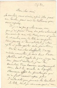 — S.d. Billet pour fixer le moment d'une visite à Raffaëlli à Asnières : « ... J'ai travaillé comme un enragé... J'espère que vous avez pioché ferme... »).