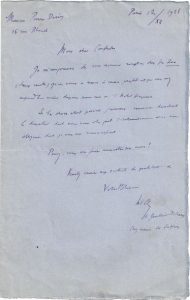 — [À l'écrivain Charles de Bussy, d'après une note au crayon d'une autre main]. S.d. « Je viens de lire votre article, fort bien fait (puisqu'il est de vous !) et qui réjouira tous les fidèles de Gounod. Ce fut un musicien de premier ordre, – avec des faiblesses et des sensibleries – Néanmoins, je ne l'aimerais guère s'il n'était attaqué avec une grossière incompétence par quelques idiots virulents... » Il évoque également le sonnet qu'il adressa de manière anonyme au critique Auguste Mangeot avec qui il s'était querellé et qui le publia sans en avoir décelé l'acrostiche qui le ridiculisait : « Mangeot est bête ».