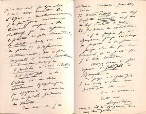 Lettre autographe signée [à l'éditeur musical Antoine de Choudens]. S.l., [juillet 1869]. 3 pp. in-8. « Mon cher ami, il y a une heure que je sais toutes les inquiétudes, toutes les craintes qui vous ont assailli la semaine dernière. Croyez, mon cher ami, que, si j'avais été informé de votre chagrin, j'en aurais... pris une bonne part. Enfin, grâce au Ciel, il n'y a dans tout cela qu'une espérance déçue... et tout peut se réparer. Il me serait agréable qu'on exécutât quelque chose de moi aux concerts de l'Opéra. Malheureusement, je ne puis faire aucune démarche auprès de M. Littolf [le compositeur et chef d'orchestre Henry Litolff, qui organisait une série de concerts symphoniques à l'Opéra de Paris] qui me refuse la politesse la plus élémentaire, le salut. Voulez-vous lui parler ? Il refusera certainment, mais, si par impossible, il accueille favorablement ma demande, proposez-lui le prélude et l'air de ballet de La Jolie fille [son opéra La Jolie fille de Perth]. Le prélude est une chose absolument symphonique qui regagnerait au concert tout ce qu'elle perdrait au théâtre. Dans aucun cas je ne conduirai l'orchestre, pour deux raisons : 1° monsieur Littolf est un chef d'orchestre admirable et je suis un chef d'orchestre de carton. 2°  J'ai horreur des exhibitions. Je ne propose pas ma symphonie, parce que Pasdeloup me propose de la jouer.... Puisque c'est lui qui a commencé, il est juste que je le laisse continuer [en fait le chef d'orchestre Jules Pasdeloup ne la jouerait pas]. Essayez donc de faire reprendre La Jolie fille à Bruxelles. À propos de La Jeune fille, si vous vouliez m'aider, nous pourrions peut-être... Nous en causerons. Votre ami... Envoyez-moi vite ma symphonie, vous seriez bien gentil. »