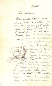 DORÉ (Gustave). Lettre autographe signée à une dame, illustrée d'un dessin original. S.l., « mardi ». 1 p. …