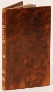 sur la vie et les miracles du grand saint Hubert, fondateur & patron de la noble cité de Liège. Liège, vers 1750. In-12, 8,5 x 13,5 cm, 12 pp., basane fauve marbrée, dos orné de faux-nerfs dorés, tête dorée (Riviere & son). Très rare édition populaire illustrée d’un bois gravé sur le titre : saint Hubert à genoux devant le cerf crucifère.