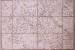 [Cartes des forest des environs de Chantilly]. 1743-1751. Réunion de 4 cartes gravées, montées sur toile rose et repliées, étui de chagrin fauve, roulette dorée en encadrement sur les plats, dos orné de filets et de fleurons dorés (étui de l’époque). Détail : Carte de la forest de Chantilly où sont marquées les nouvelles routes, carrefours et chemins faits pour la commodité des chasses… juin 1744 (95,5 x 64 cm). — Carte de la forest du Lys et des environs où sont marquées les noms des ventes et leurs nos, les nouvelles routes, carrefours, chemins et remise, faite pour la comodité des chasses… mars 1751 (92 x 65 cm). — Carte de la forest d’Halatte où sont marquées les nouvelles routes, carrefours et chemins faits pour la comodité des chasses… juillet 1743 (93 x 62 cm). — Carte de la forest d’Ermenonville où sont marquées les nouvelles routes, carrefours et chemins faits pour la commodité des chasses… mai 1743 (93 x 61 cm).