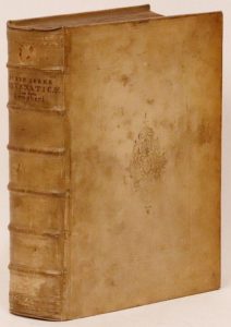 rei venaticæ scriptores et bucolici antiqui… Leyde & La Haye, J. A. Langerak, P. Gosse, J. Neaulme, R. Chr. Alberts, J. vander Kloot, 1738. Fort volume in-4, 19,5 x 25 cm, 32 ff., 584 pp., 12 ff., 168 + 8 pp. (chiffrées 168*-168**), 4 ff., 168 pp. (chiffrées 169-336), vélin ivoire, encadrement et fleurons centraux et angulaires à froid sur les plats, dos à nerfs (reliure de l’époque). Unique édition érudite, illustrée d’un beau frontispice et de vignettes gravés.