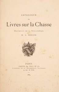MERCIER (A.)]. — Catalogue de livres sur la chasse provenant de la bibliothèque de M. A. Mercier. Paris, Labitte, …