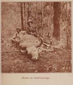 Le Lang-Bian (Indochine française). Sanatorium et chasses. Nouveau guide illustré… Saigon, S. Montégout, 1917. In-12, 12,5 x 16 cm, 82 + II + 48 (chiffrées 87-134) pp., 7 pl., 2 cartes repliées, demi-percaline bleue à la Bradel à coins, non rogné, couverture (reliure de l’époque). Rare guide touristique illustré de photos de chasse. Contient le décret du 21 octobre 1917 réglementant la chasse au Langbian.