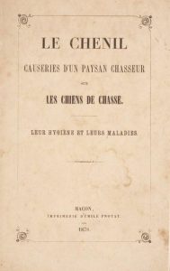 Chenil (Le). Causeries d’un paysan chasseur sur les chiens de chasse… Macon, impr. Protat, 1878. In-8, 13 x …