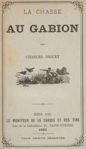 DIGUET (Charles). La chasse au gabion. Saint-Étienne, Le moniteur de la chasse et des tirs, 1883. In-12, 13 x 19,5 …