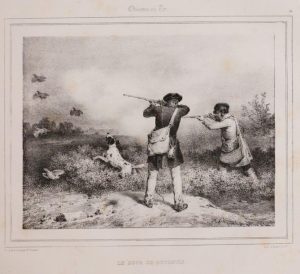 GRENIER (Francis). Album des chasses au tir & au chien d’arrêt. Paris, Aubert, vers 1840. In-4 oblong, 33,8 x 25,4 …