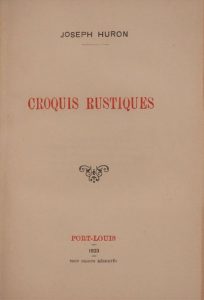 HURON (Joseph). Croquis rustiques. Port-Louis, T. G. P. & S., 1923. In-12, 135 x 19,5 cm, 1 f. blanc, 4 ff., 128 …