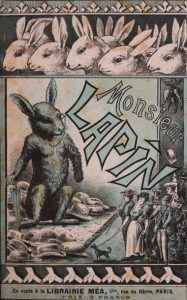 Monsieur Lapin. Causerie. Grasse, E. Imbert, 1895. In-8, 13,5 x 22 cm, 130 pp., 1 f., demi-maroquin bleu à coins, dos à nerfs, non rogné, couverture et dos (reliure postérieure). Rare. Charmante couverture illustrée.