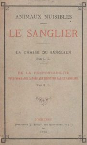 Le sanglier… Tonnerre, impr. P. Bailly, 1878. In-8, 13 x 20,5 cm, 104 pp., demi-maroquin violet à coins, dos à nerfs, couverture et dos, non rogné (reliure moderne). Unique édition peu courante.