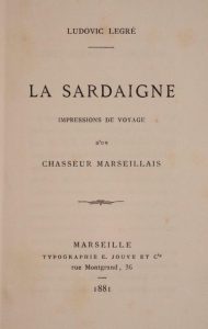 LEGRÉ (Ludovic). La Sardaigne. Impressions de voyage d’un chasseur marseillais. Marseille, Typographie E. Jouve et …
