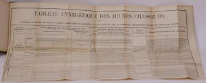 Le petit guide pratique de la chasse au chien d’arrêt des jeunes chasseurs. Dijon, impr. Jacquot & Floret, 1896. In-12, 12 x 19,5 cm, 54 pp., 1 f., 1 tableau replié, demi-veau violine, couvertures (reliure postérieure). Édition originale. L’auteur était de Saint-Jean-de-Losne. Grand tableau replié non mentionné par Thiébaud.