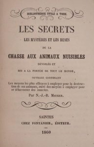 MAUGER (N. J. B.). Les secrets, les mystères et les ruses de la chasse aux animaux nuisibles… Saintes, Fontanier, …
