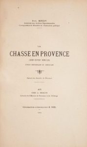 MOULIN (Paul). La chasse en Provence (XIIIe-XVIIIe siècle). Étude historique et juridique. Aix, …