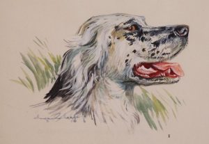 Bel exemplaire. Envoi de l’auteur enrichi d’une belle gouache d’Eugène Leliepvre (tête de setter).
