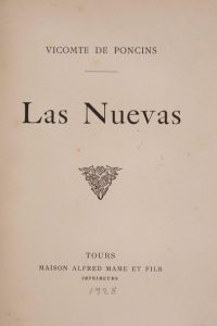 PONCINS (Edmond de). Las Nuevas. Tours, Alfred Mame et fils, 1928. In-8, 14,5 x 19,5 cm, 1 f. blanc, 52 pp., 2 ff. …