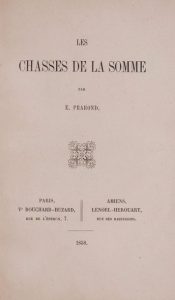 PRAROND (Ernest). Les chasses de la Somme. Paris, vve Bouchard-Huzard & Amiens, Leoel-Herouart, 1858. In-8, 15,5 x …