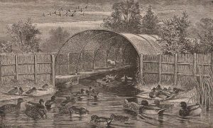 Les canardières. Bruxelles, impr. Vanbuggenhoudt, 1900. In-12, 12 x 19 cm, 146 pp., demi-chagrin noir à coins, dos à nerfs, couvertures (reliure postérieure). Édition originale « très rare » (Thiébaud). Illustrations en noir dans le texte.